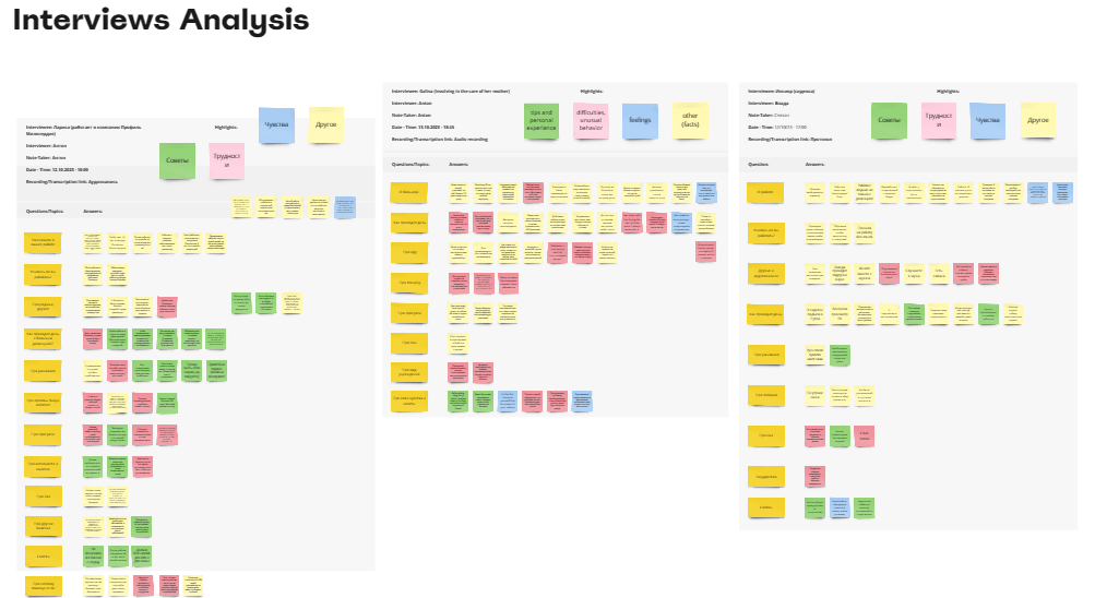 В первом семестре вы изучаете своих будущих пользователей, чтобы выработать сильную идею. Первые два месяца вы проводите интервью, собираете данные и погружаетесь в жизнь пользователей, затем систематизируете ваши знания и делаете выводы о потребностях. В конце семестра вы придумываете и отбираете идеи, которые будете тестировать и реализовывать дальше.